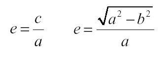 Es una cantidad constante para cada elipse, se interpreta como una medida de qué tan “achatada” es la elipse. Se calcula dividiendo la semidistancia focal (de foco a centro) entre la longitud del semieje mayor. En términos de los semiejes mayor y menor se le puede calcular mediante la siguiente fórmula: